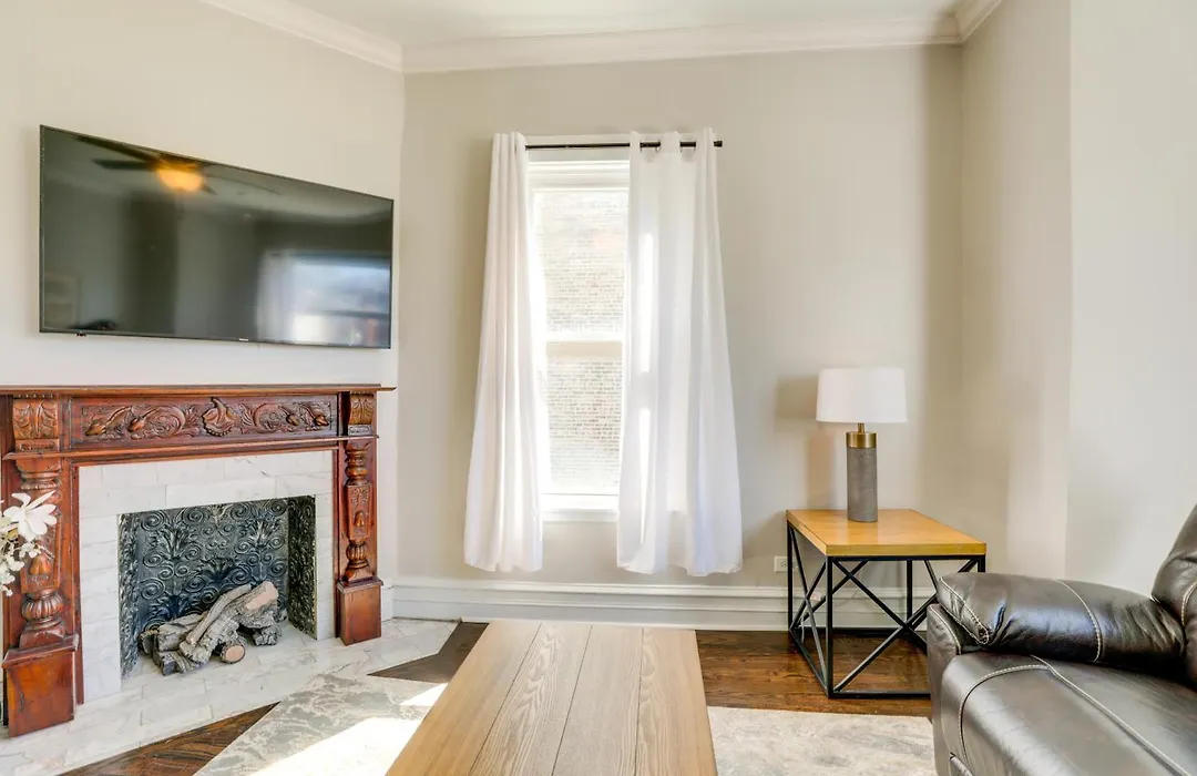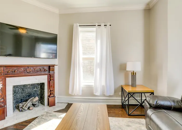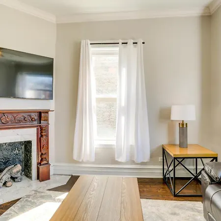 Un micro-ondes et un réfrigérateur peuvent être trouvés dans une cuisine complète. Il se trouve à 14 minutes en voiture de l'aéroport international Midway de Chicago.